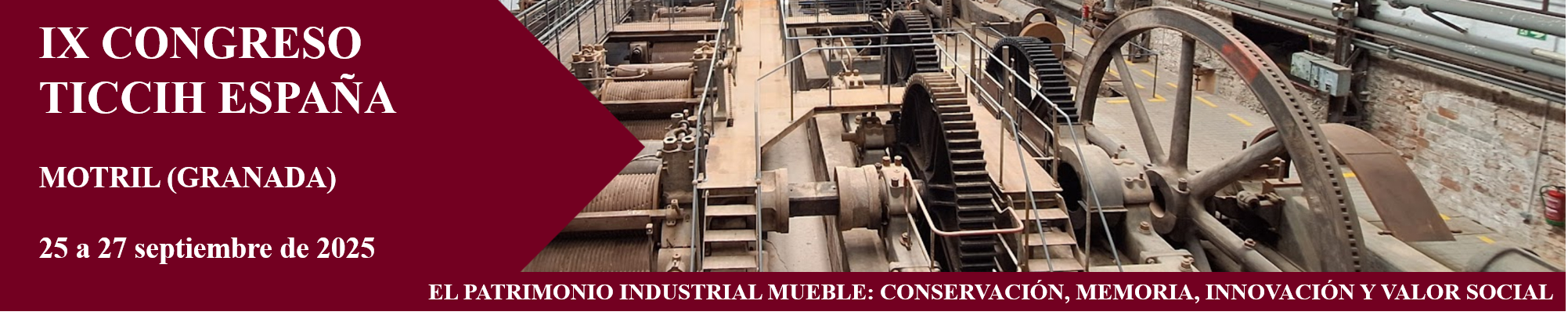 El IX Congreso de TICCIH España 2025 tendrá lugar en Motril (Granada) del 26 al 27 de septiembre, con el patrimonio industrial mueble como tema central. Este congreso busca generar un espacio de reflexión y debate sobre el conocimiento, el estado actual y el futuro de los bienes muebles vinculados a la industrialización, fundamentales para entender la historia técnica, social y económica de los procesos productivos.